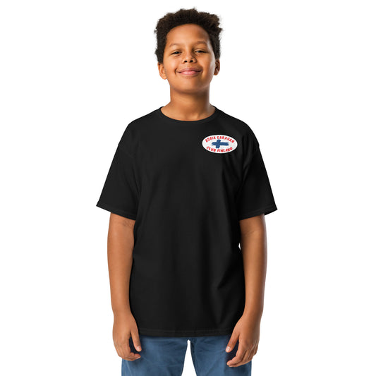 Nuorten t-paita Adria Club Finland logolla edessä ja takana