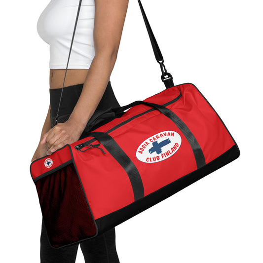 Trendikäs punainen kantolaukku Adria Club Finlandin printillä