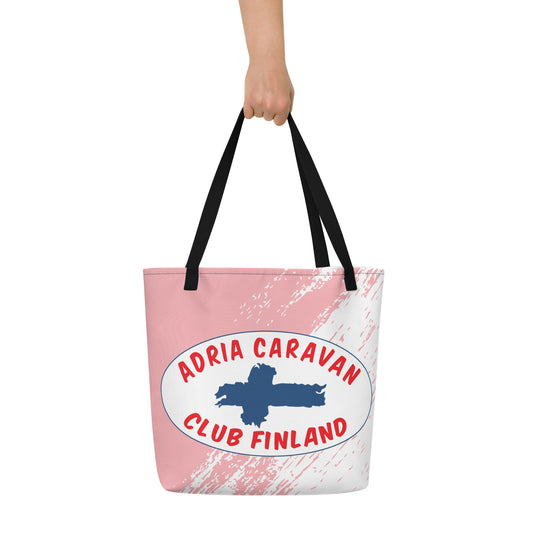 Trendikäs pinkki kantolaukku Adria Club Finlandin printillä