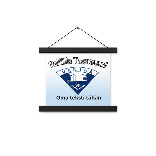 SF-Caravan Vantaa juliste ripustettavalla kehyksellä "Tallilla Tavataan!" ja omalla tekstillä