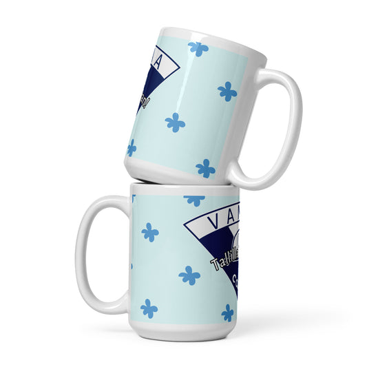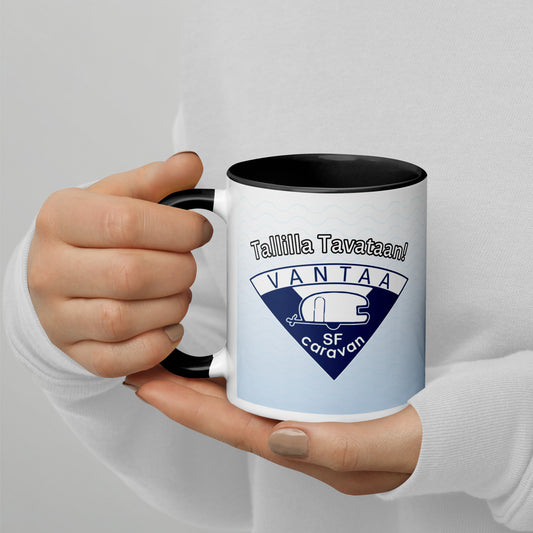 SF-Caravan Vantaan muki, värikäs kahva ja sisus "Tallilla Tavataan!" tekstillä