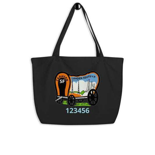 Eko saunakassi luomupuuvillaa SFC Kaarinan logolla ja omalla Caravan numerolla
