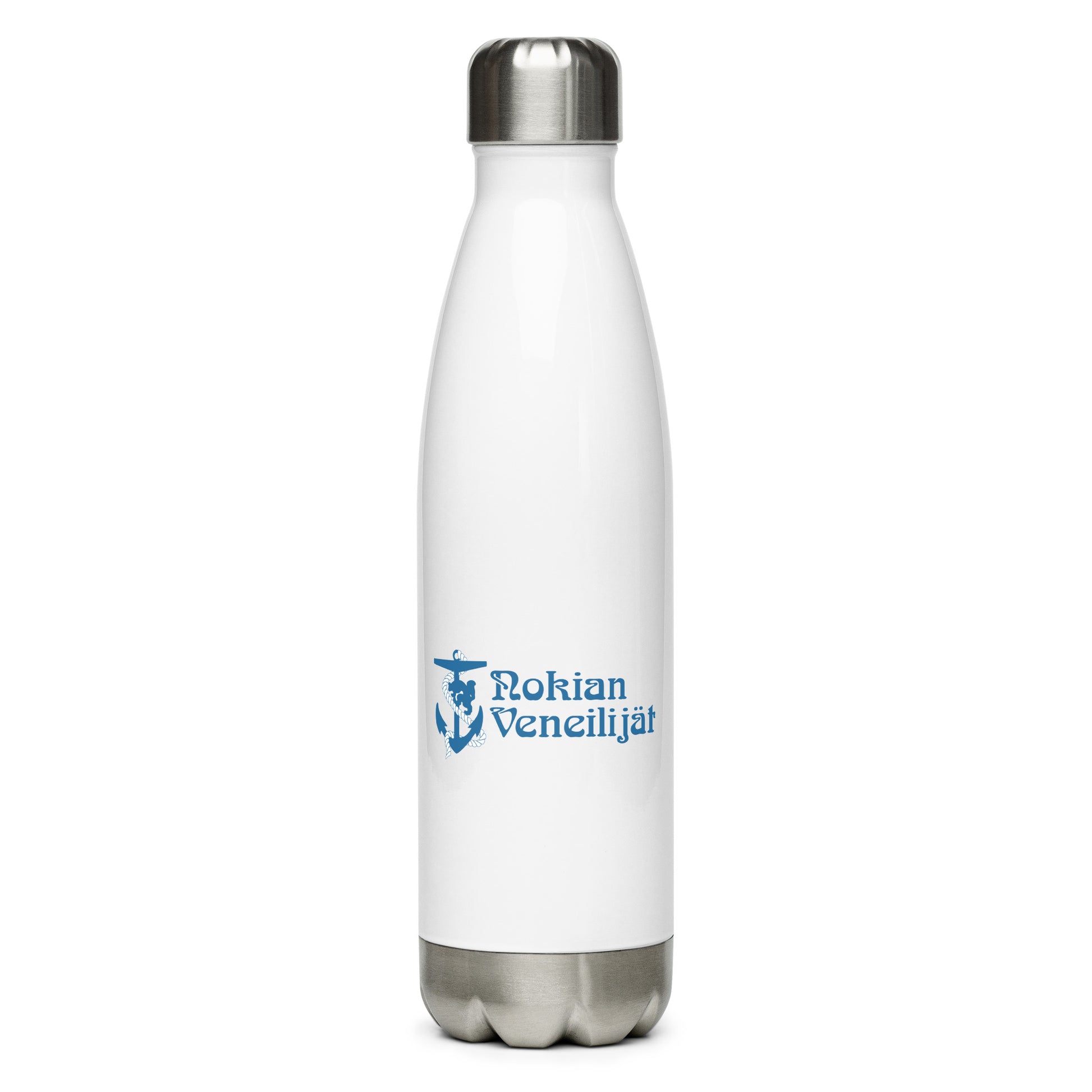 Ruostumattomasta teräksestä valmistettu juomapullo Nokian Veneilijät -logolla. Pullon kaksikerroksinen rakenne auttaa pitämään kylmän kylmänä ja kuuman kuumana. Nyt on mukava nauttia lempijuomasi juuri oikean lämpöisenä helposti mukana kulkevasta, siististä ja uudelleenkäytettävästä pullosta.
