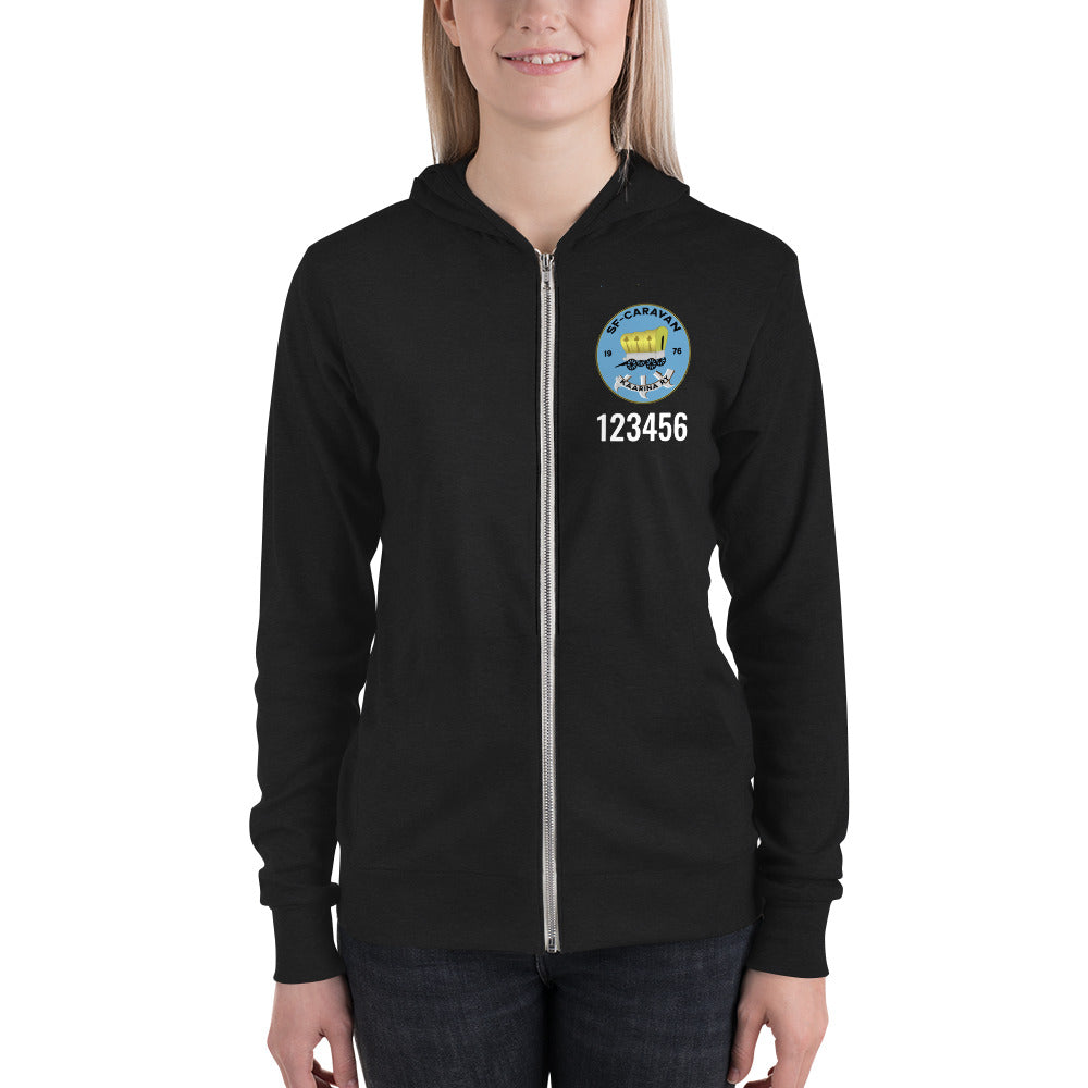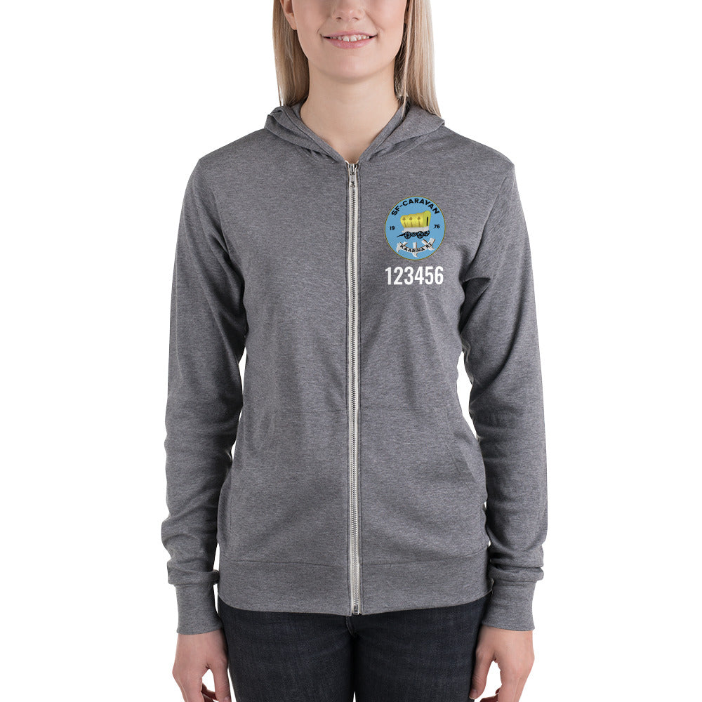 Ohutta materiaalia oleva ja erittäin laadukas Bella&Canvas vetoketjullinen huppari, jossa SF-Caravan Kaarinan oma logo.